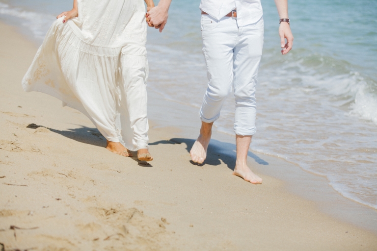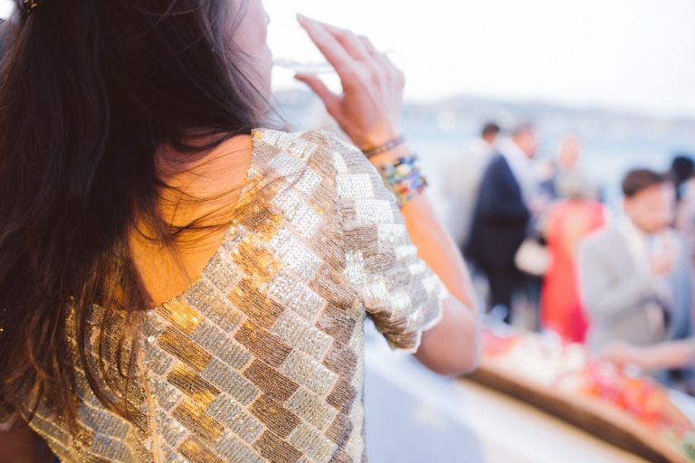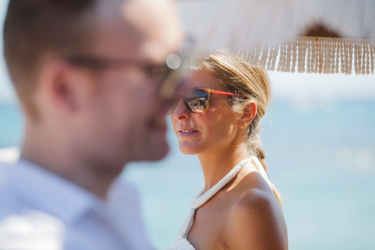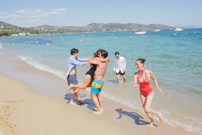 Le couple a choisi un mariage sur deux jours, comprenant la cérémonie et le brunch du lendemain. Les préparatifs de la mariée et la cérémonie laïque ont eu lieu à la maison familiale, tandis que la cérémonie civile a été organisée à la mairie de Ste Maxime et la fête au restaurant sur la plage.