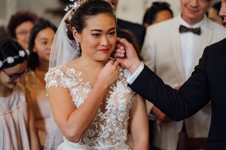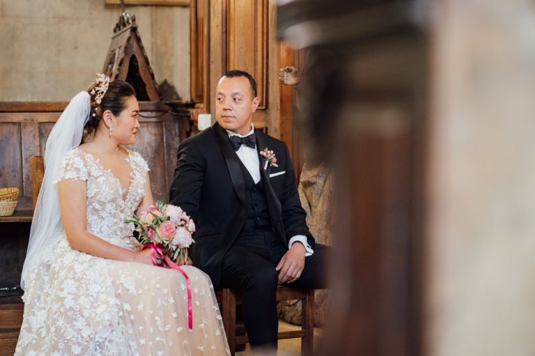 Nous nous sommes donc rendu vers l’église soigneusement décorée par des compositions florales réalisées par les organisatrices de mariage ma vie de bohème. La cérémonie religieuse fut très émouvante.