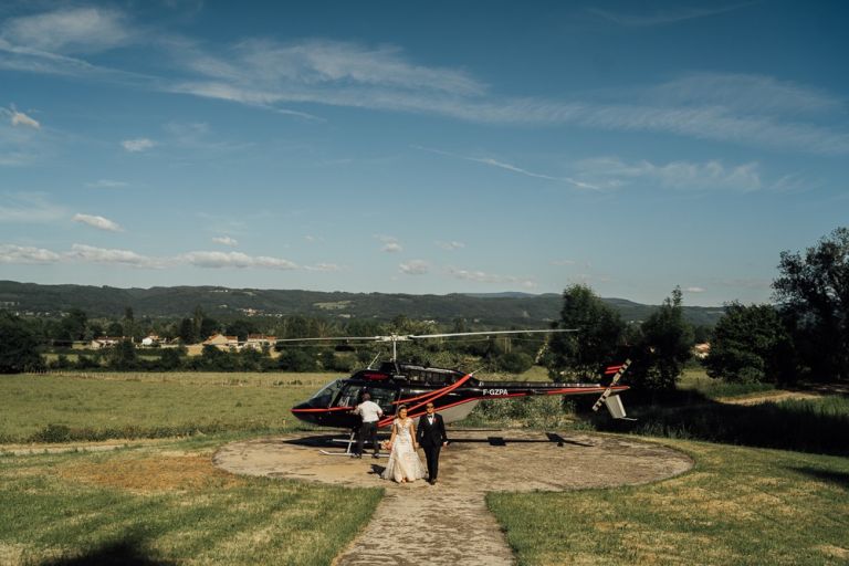 Celle-ci terminée, nous nous sommes rendu au chateau par un moyen de transport des plus originaux. En effet, c’est en hélicoptère que les amoureux du jour ont fait leur entrée. Et quelle entrée !!!! La surprise était de taille pour tout les convives. D’ailleurs j’ai eu l’opportunité de pouvoir les accompagner et de faire mon premier baptême de l’air en tant que photographe de mariage. Et je peux dire, que j’ai adoré cette experience !!! Voir Clermont Ferrand vu du ciel, WAOUH sans mot !!