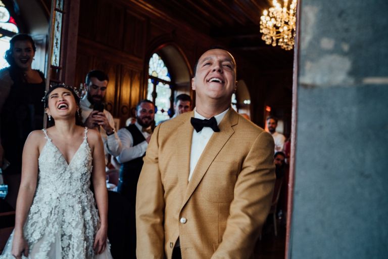 C’est donc dans une ambiance sereine que j’ai retrouvé le couple dans leur chambre respective. Le getting ready terminé, le debut des festivités peu commencer.