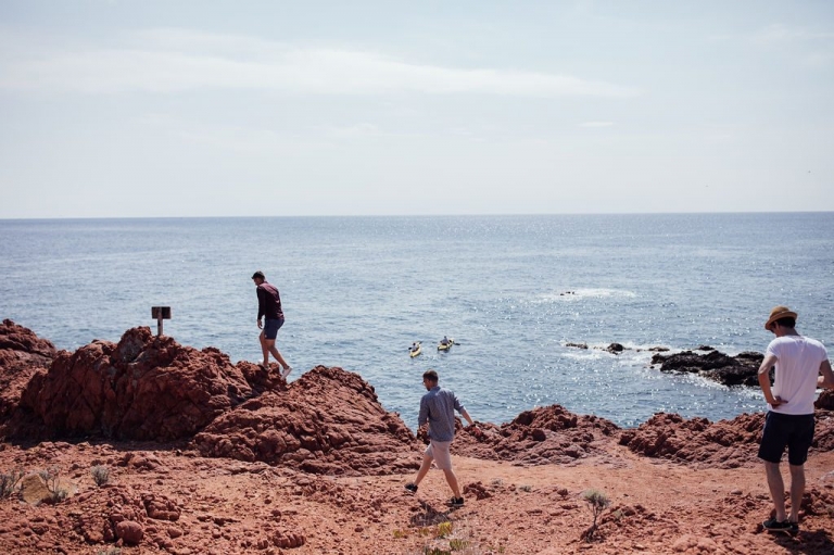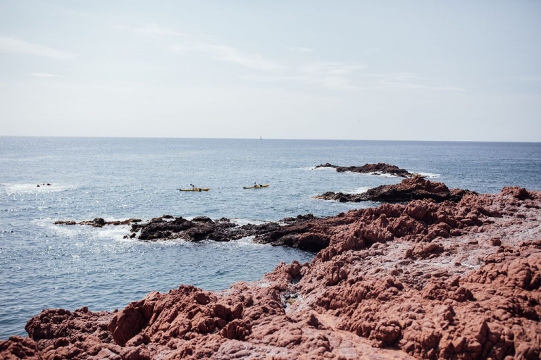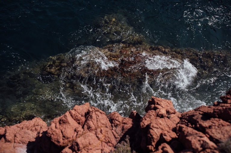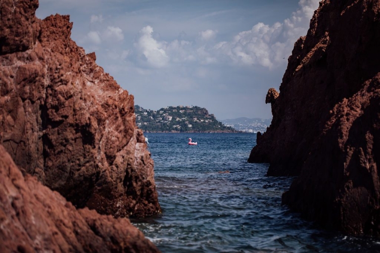 Au cœur des massifs qui déclinent leurs tons d’ocre qui relèvent parfois du rouge, la mer apporte sa touche bleue, scintillante et presque phosphorescente.