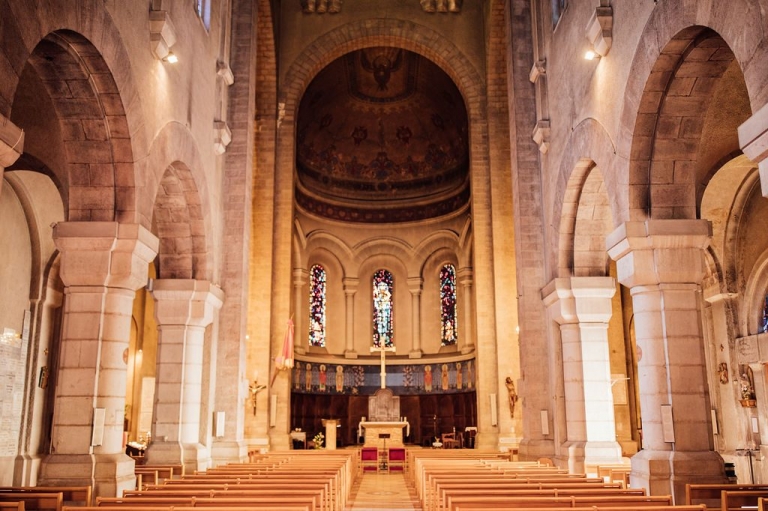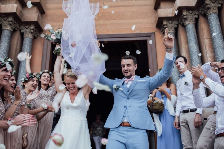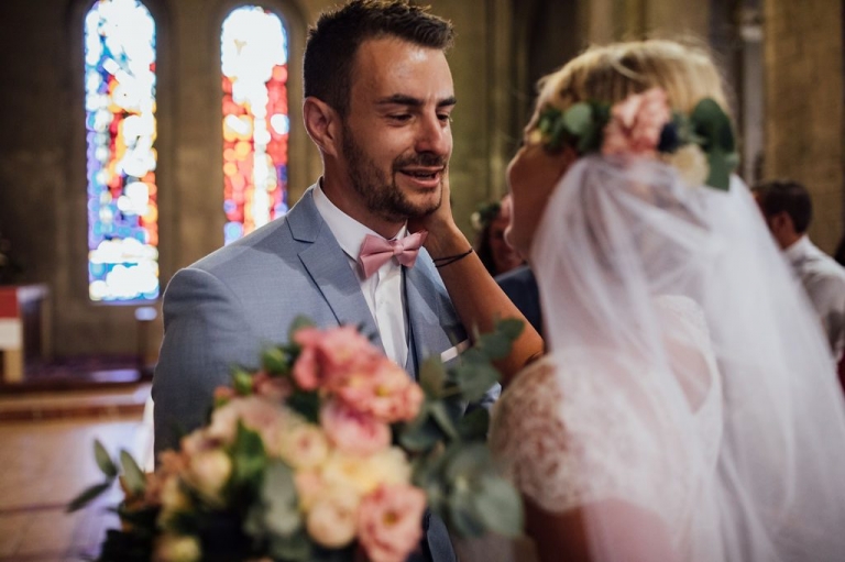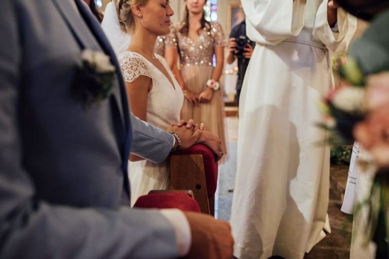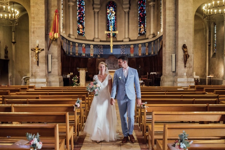 La cérémonie religieuse eut lieu dans une église dont les vitraux splendides ont irradié la traversée de la nef par les mariés, sous l’œil ému des invités venus nombreux.