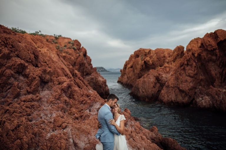 Pour un photographe de mariage, se retrouver à Saint Raphaël dans le massif de l’Esterel est une bénédiction. La nature se charge de vous fournir les couleurs les plus belles et les contrastes les plus explosifs. Nul besoin de trucage dans ce cadre unique du sud de la France.
