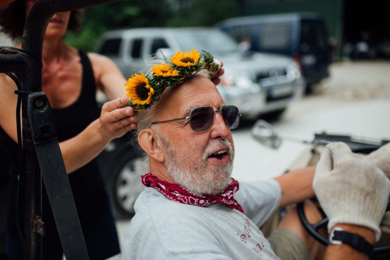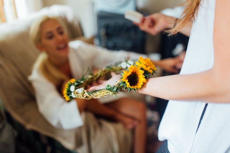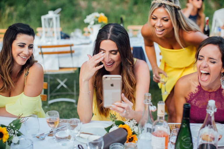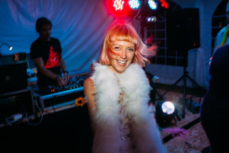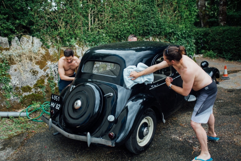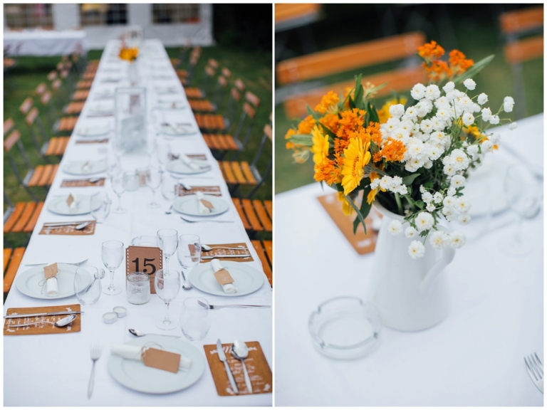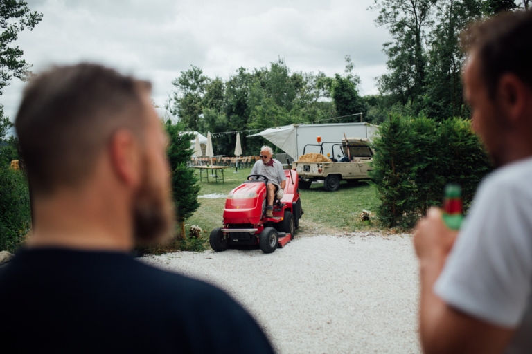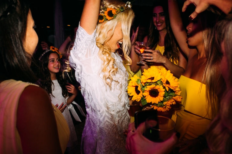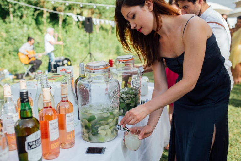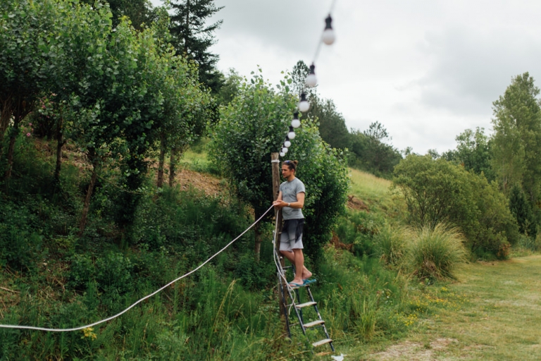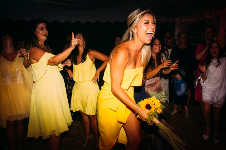 Tout d’abord, il y a eu une cérémonie laïque en pleine air. La décoration pour celle-ci avait rempli tout les codes d’ un mariage champêtre, avec des bottes de pailles, aussi des fanions, des tournesols, également une voiture allemande à traction pour le Photo Booth , ainsi que des guirlandes de guinguette, de même qu’un barbecue, ils ont opte pour cette option plutôt qu’un repas a l’assiette. Et de de surcroît une super ambiance, des rires encore et encore. Plus tard place à la danse ou les maries et les convives on littéralement mis le feu au dance floor.