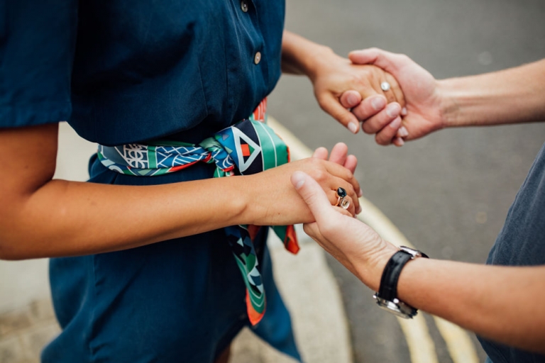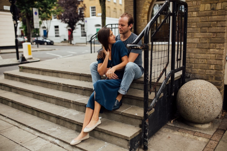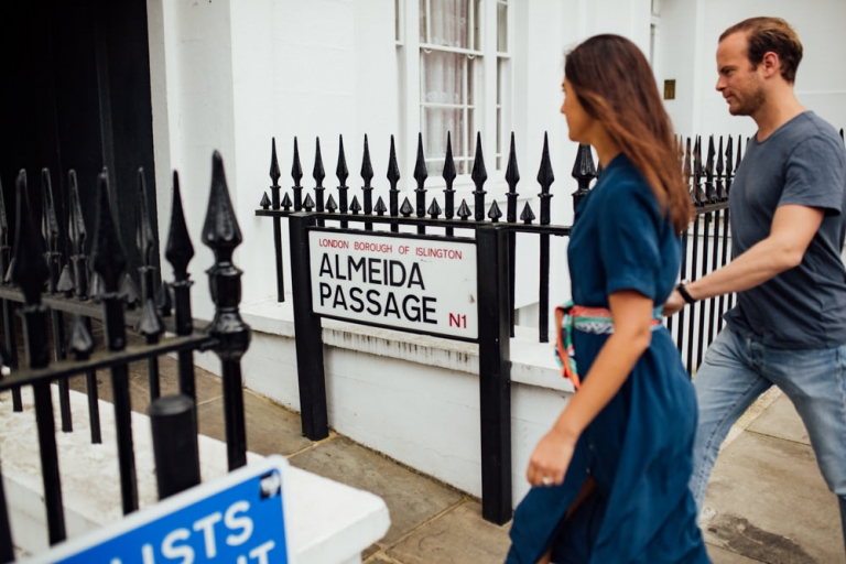 Nous avons choisi le quartier d’Angel pour notre séance photo. Avec ses rues animées et ses boutiques vintage charmantes, c’était le cadre parfait pour capturer l’essence de leur amour. Nous avons commencé notre promenade dans les petites rues et les passages cachés, en capturant leur sourire et leur complicité.