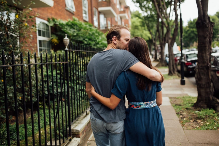 Lea et Julien étaient incroyablement faciles à photographier, leur amour était tellement évident dans chaque image. Nous avons exploré le quartier ensemble, en nous arrêtant de temps en temps pour capturer des moments intimes, des baisers et des regards amoureux.