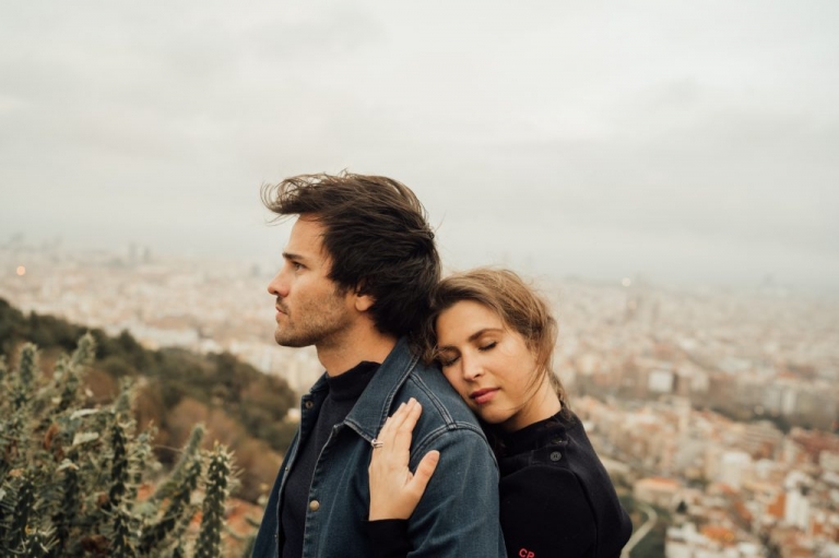 Le ciel non plus n’est pas le même partout et Chloé et Antoine voulaient emporter un morceau du ciel barcelonais avec eux. Nous avons déambulé sur un promontoire qui surplombe la ville. Les nuages dans le ciel semblaient montrer leur désapprobation de voir ce couple les quitter et ils faisaient grise mine.