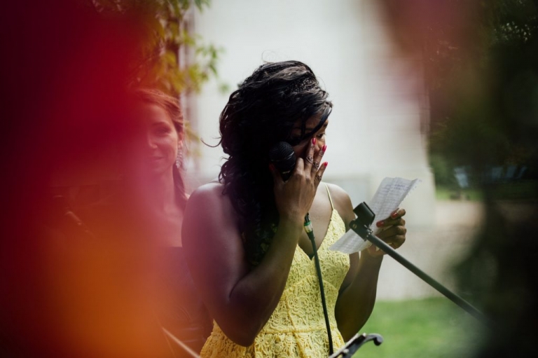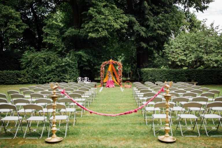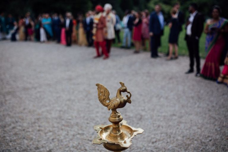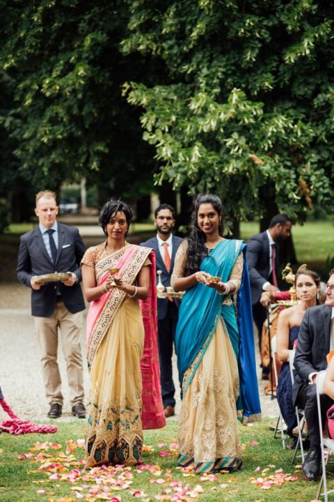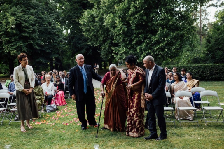 Une fois arrivé au Château, le couple et leurs convives ont profiter de se retrouver pour ensuite s’éclipser quelques minutes pour réaliser une seconde photos de couple dans les jardins du château. Ensuite le couple ce sont parais de tenue traditionnel indienne pour démarrer la Cérémonie Laïque. Celle-ci fut organisé par la soeur de Patrick et une amie comme en maitresse de de cérémonie. Et ce fut un moment ou les rires et les larmes été au rendez-vous.