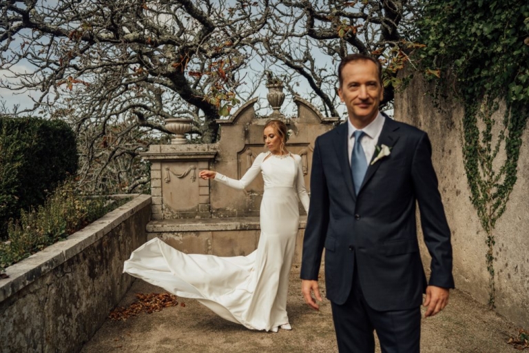 The couple’s photo session took place in the terraced gardens, before the dense sky announced the night. After dinner, the guests could still enjoy the sweetness of Portugal and its warm welcome.