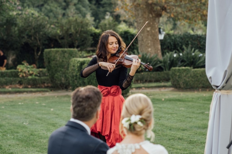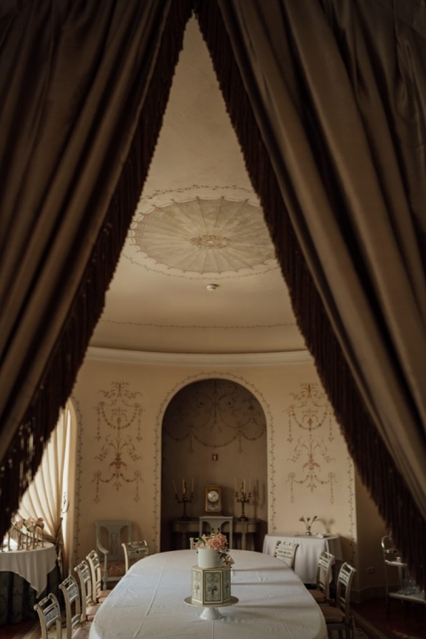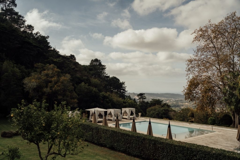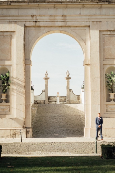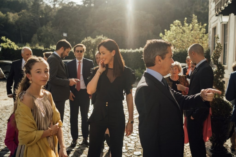 Sintra is a charming place that appealed to the bride & the groom. As if, it originated straight out of a fairy tale, combining green hills, fern and lichen forests with exotic gardens. In fact, the couple had their reception, in the sumptuous 19th century Tivoli Palace, nestled in the heights and in a marvelous haven of freshness that allowed them to escape the sometimes overwhelming heat of Portugal.