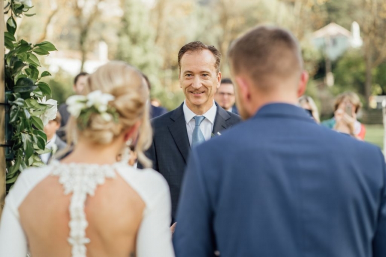 After a brief meeting in the restaurant bar of the JnCQuoi during which we clinged straight away, the secular ceremony took place outside, on the lawns of the hotel. Relatives and friends gathered there, to take advantage of the magnificent setting, in the middle of the luxuriant vegetation, benefiting the leniency of time, between mountain and ocean.