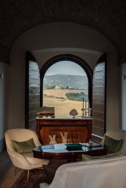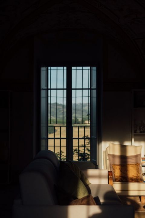 The next day, brunch was held in the Castello di Ramazzano. On the lawn, tablecloths, and cushions were placed on the ground. This allowed their guests to place themselves freely and to gather around the buffets. The couple wanted to give their guests more freedom, unlike the day before when they were placed.